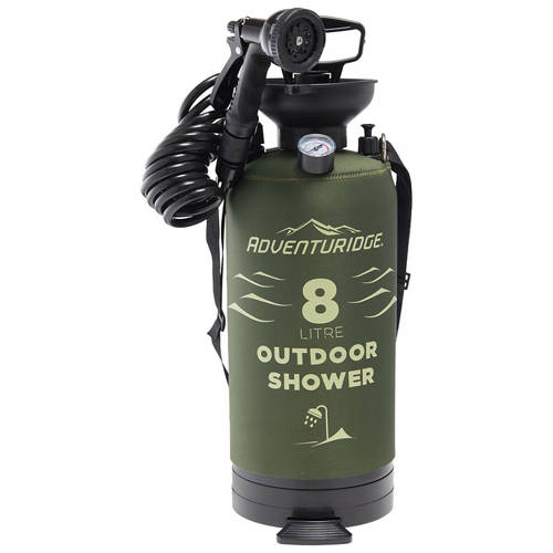 8L pressure sprayer with 10-pattern spray nozzle, safety valve and manometer.