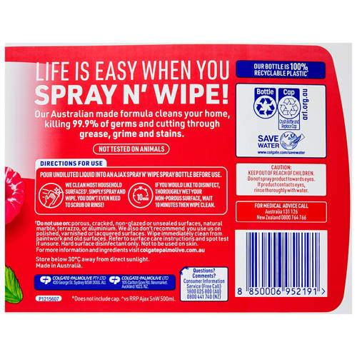 Ajax Multipurpose Cleaner cleans your home, killing 99.9% of germs and cutting through grease, grime and stains.