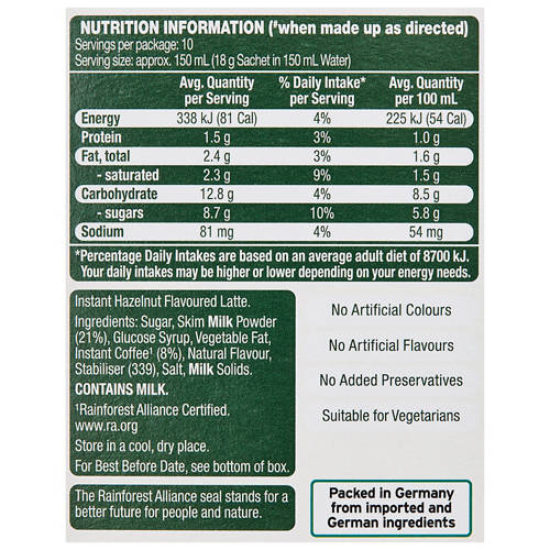 Hazelnut Latte Coffee Sachets 10 Pack 180g