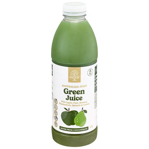 A tasty juice featuring flavours of apple, pear, banana, passionfruit, spinach and lemon. 99% Australian ingredients. No added artificial flavours or preservatives.