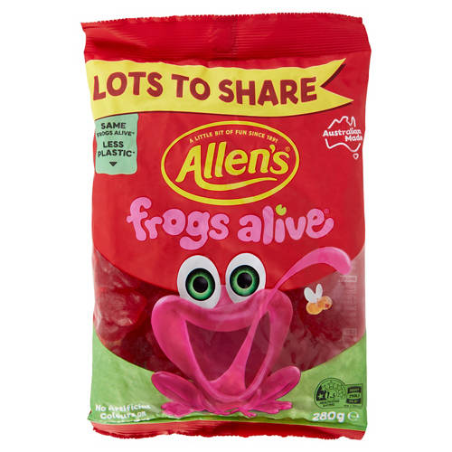 Frog's alive is a great addition to any occasion. These frogs will be so popular they won't have time to hop away. Australian made. Contains no artificial colours.