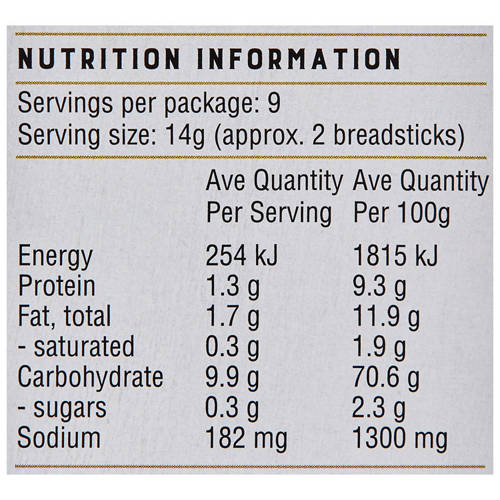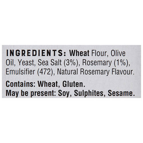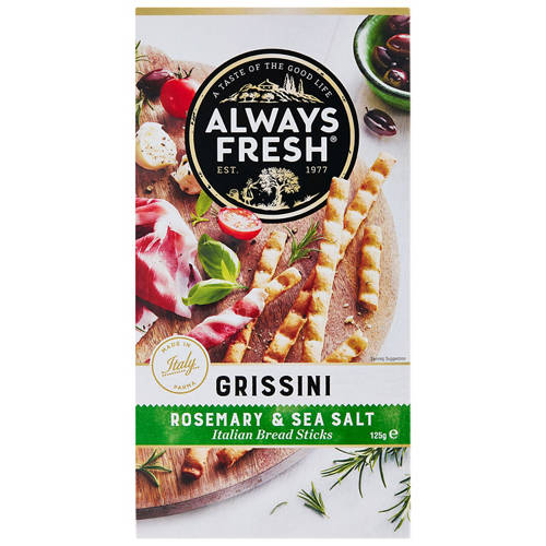 Enjoy the classic crunch of Rosemary and Sea Salt Grissini. These golden, oven-baked breadsticks are delicately seasoned with aromatic rosemary and a touch of sea salt for a fragrant, savoury flavour.
