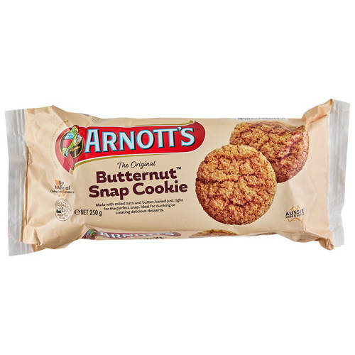 Arnott’s Butternut Snap biscuits are a golden, crunchy treat made with rolled oats and real butter for a deliciously rich flavour. Perfect for snacking or as a base for slices and desserts.