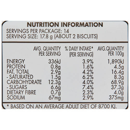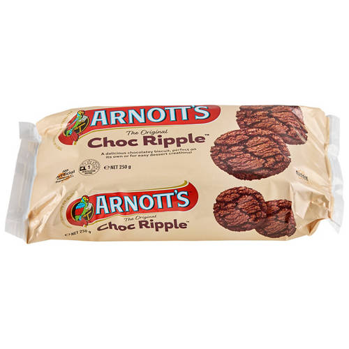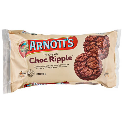 Arnott’s Choc Ripple biscuits are a classic Aussie favourite. Enjoy these deliciously rich chocolate cookies on their own or use them as the ideal base for cheesecakes, slices, and dessert recipes.