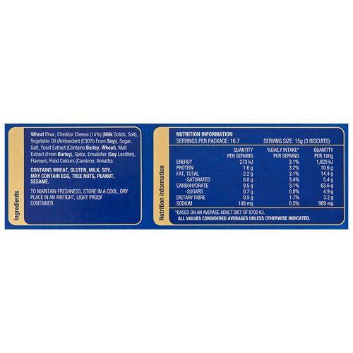 A crisp, golden biscuit baked with cheese for a delicious taste. Perfect on their own, paired with your favourite toppings, or served on a cheese platter, they’re a classic snack