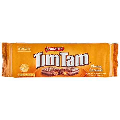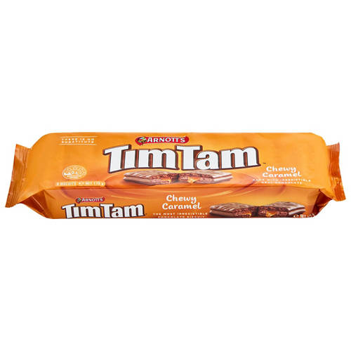 Soft and chewy Tim Tams filled with rich caramel, wrapped in smooth chocolate for a sweet treat.