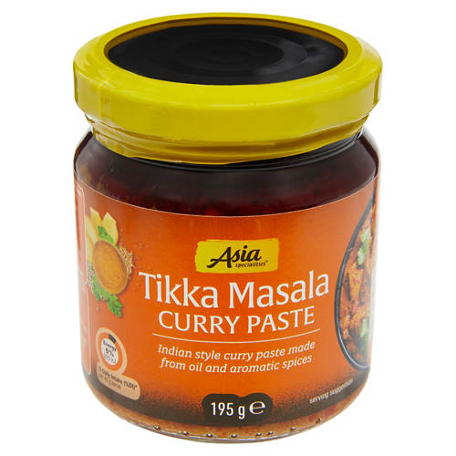 The Indian-style Tikka Masala curry paste, made from oil and aromatic spices, captures the essence of traditional flavours, for a quick and delicious cooking experience.
