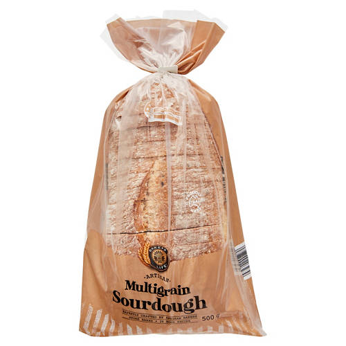 A delicious, handcrafted loaf of multigrain sourdough bread, sliced for your convenience. Proudly Baked in Australia.