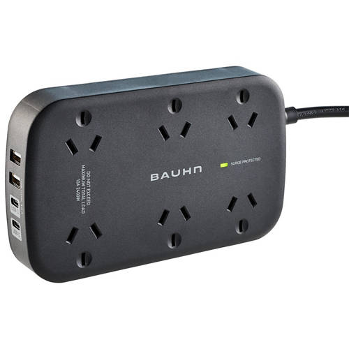 - 6x AU Outlet, 2x USB C, 2x USB A ports