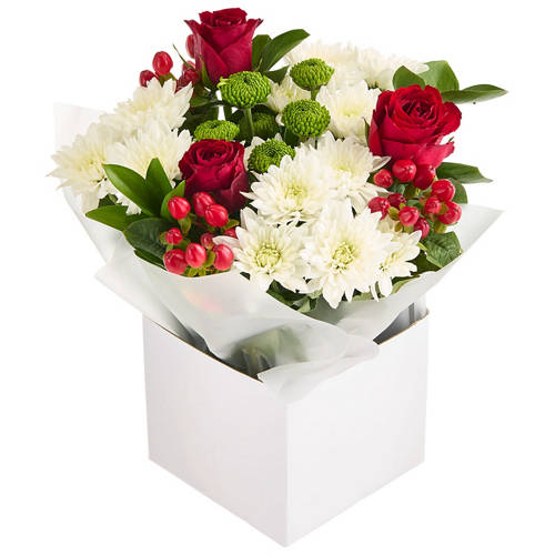Celebrate the holiday season with Rudolph's Flower Arrangement! Featuring a delightful mix of blooms in festive colors, this arrangement brings warmth and joy just like everyone's favorite red-nosed reindeer. Add a charming, whimsical touch to your holiday decor or gift it to make spirits bright!