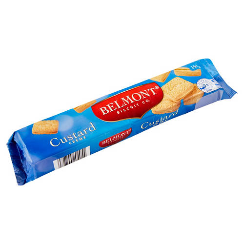 Custard flavoured crème sandwiched between 2 vanilla flavoured biscuits.
