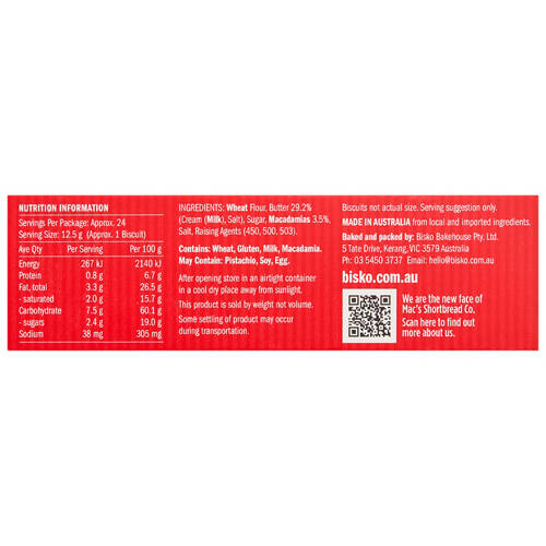 Rich, buttery shortbread meets the delicate crunch of premium macadamias in this indulgent treat.