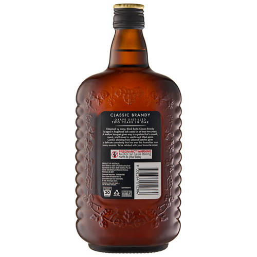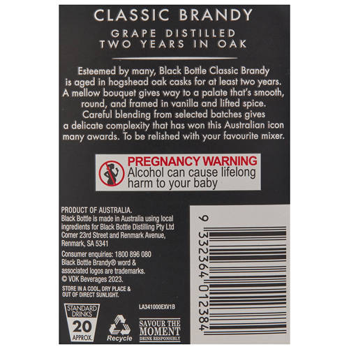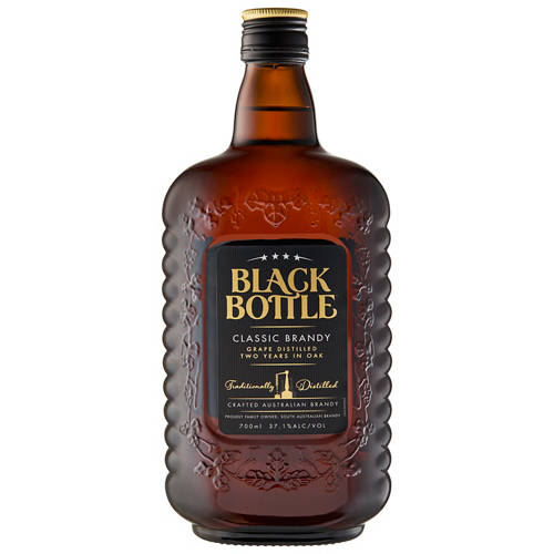 Black Bottle Brandy offers a smooth richness, expertly crafted and aged in oak hogsheads for over two years.