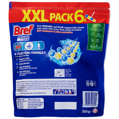 Bref Power Active toilet stain remover features a powerful 4 function formula with patented technology: