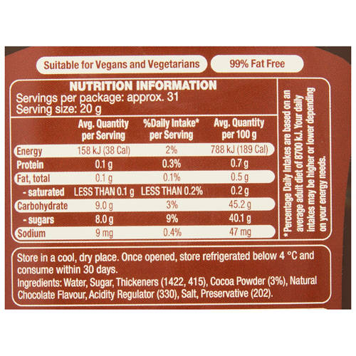 Delightfully sweet and delicious chocolate flavoured ice cream topping. No artificial colours or flavours. Suitable for Vegans and Vegetarians.