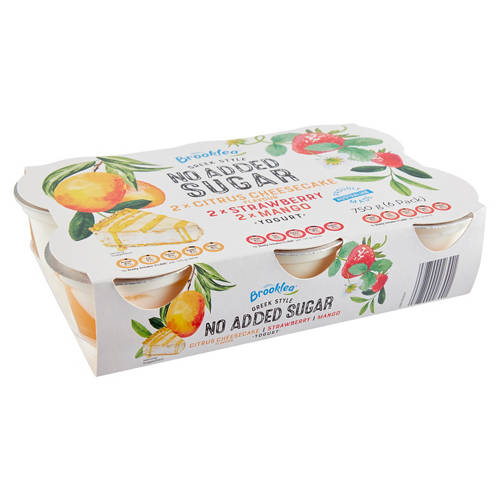 Delight in a delicious snack, with this assortment of Greek Style No Added Sugar Yogurts.