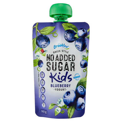 All natural no added sugar blueberry yogurt is deliciously creamy with no artificial colours, flavours or preservatives. Packaged in a convenient pouch, it's perfect for lunches or on the go snack. Made in Australia.