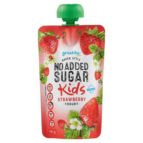 Our Kids No Added Sugar Greek Style Strawberry Yogurt Popuch is made in Australia and contains no artificial flavours, preservatives, or colours. This all-natural treat contains live yogurt cultures and is a source of calcium. With a delightful strawberry taste, it's a perfect healthy snack for little ones.
