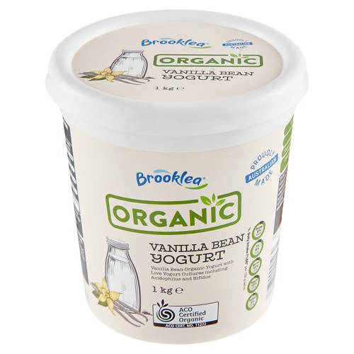 Vanilla bean organic yogurt with live yogurt cultures including acidophilus & bifidis. Australian certified organic. Made with no artificial colours, flavours or preservatives.