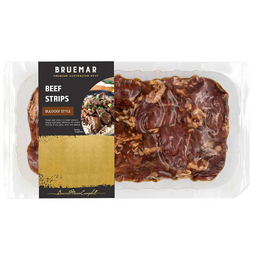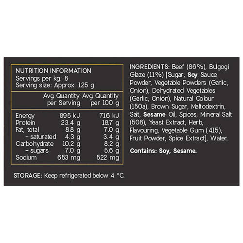 Tender beef strips in a sweet-savoury bulgogi style glaze delivering rich umami flavours of soy, garlic, onion and sesame.