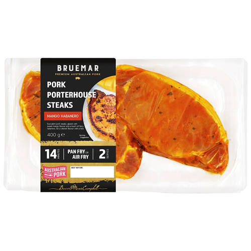 Delicious Pork steaks coated in a mango flavoured-glaze with a hint of habanero.