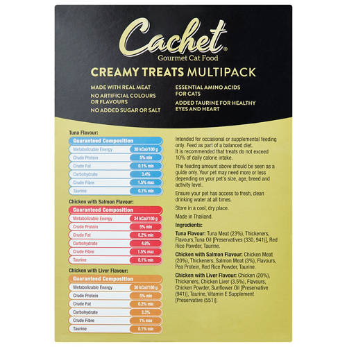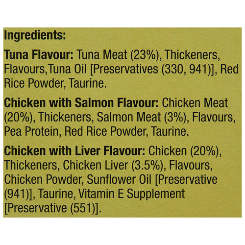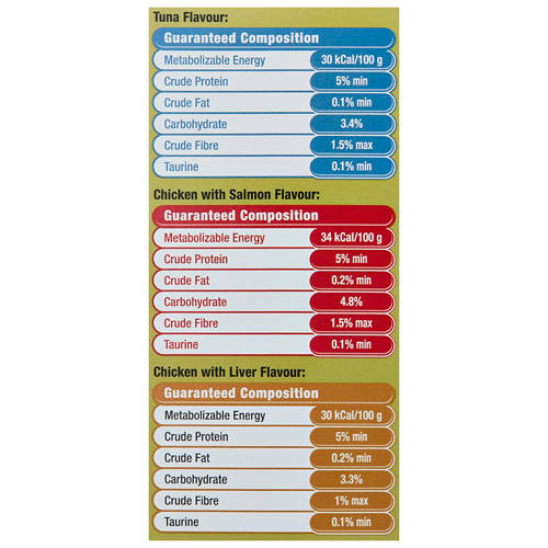 - Multipack with tuna, chicken with salmon, and chicken with liver treats.