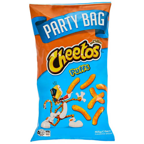 Light, airy and packed with cheesy flavour. Cheetos Puffs are the ultimate party snack made with real cheese and plenty of crunch to keep everyone smiling.