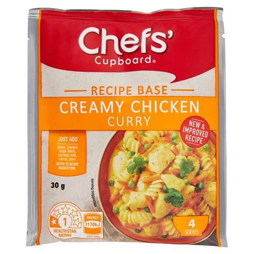 Elevate your meals with our Creamy Chicken Curry Recipe Base, crafted with a blend of spices like ginger, turmeric, and coriander, it contains no artificial colours, flavours, or added MSG. Just add pasta, chicken thigh fillets, coconut milk, carrots, and peas for a delicious dish.