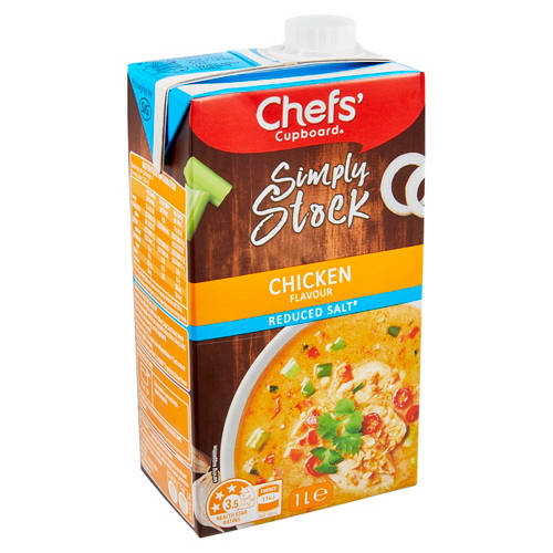 Chef's cupboard salt reduced chicken flavour liquid stock is made with real chicken flavour for a delicious balance of chicken and mild garlic taste. Reduced salt. 99% fat free. No artificial colours, flavours or added preservatives. No added MSG. Suitable for freezing,