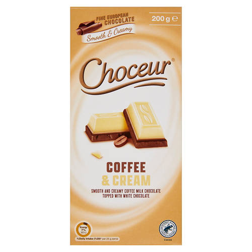 Indulge in our Coffee & Cream White Chocolate, a smooth European chocolate delight with rich coffee flavour and creamy white chocolate. Made with Rainforest Alliance certified cocoa, it's perfect for pairing with your afternoon coffee or as a sweet treat to share.