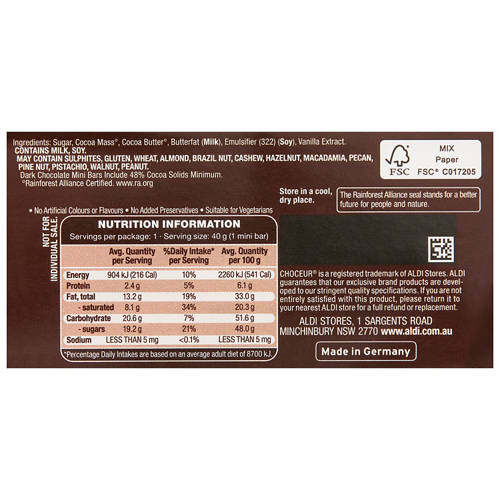 Savour the rich taste of our Mini Dark Chocolate Bars, crafted with Rainforest Alliance Certified cocoa. Enjoy these delightful, portioned pieces, perfect for sharing or a quick treat. They're free from artificial colors, flavours, and preservatives, and suitable for vegetarians.