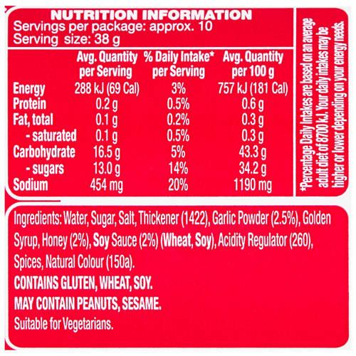 Transform meat and poultry dishes with the flavourful honey, soy and garlic marinade. No artificial colours or flavours.