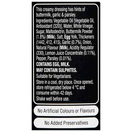 This creamy dressing has hints of buttermilk, garlic & parsley.
