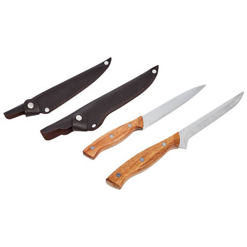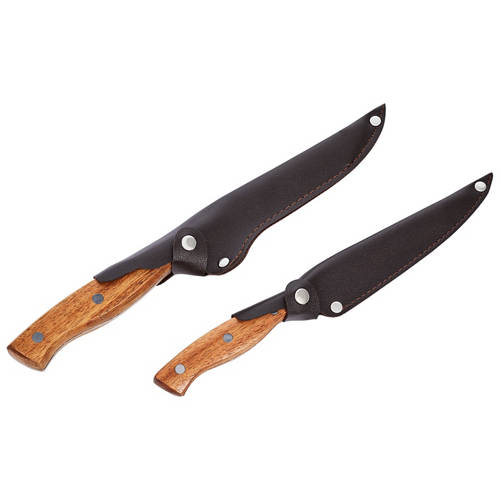 - Quality stainless steel blades with wooden handles