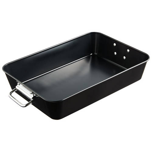 Cook a variety of meals with the Carbon Steel Roaster with Rack. Ideal for turkey, chicken, beef, lamb, pork, and vegetables, this versatile roaster ensures perfectly cooked dishes every time. The V-shaped removable iron rack promotes airflow, while riveted handles offer a secure grip and fold down for easy storage.