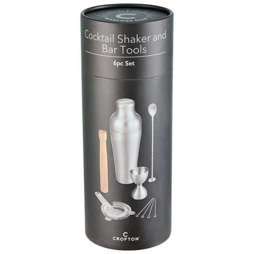 Includes 700ml shaker, 30/60ml double jigger, julep strainer, bar spoon, 4 cocktail picks and wooden muddler. Available in gold or stainless steel colours.
