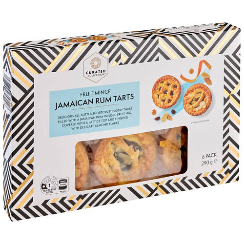 Delicious all butter shortcrust pastry tarts filled with a Jamaican rum-infused fruit mix, covered with a lattice top and finished with delicate almond flakes.