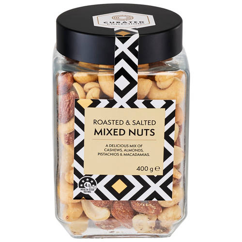A mix of carefully selected finest quality nuts - roasted and salted Australian almonds and macadamias blended with cashews and pistachios.