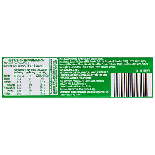 Savour the refreshing taste of our Mint Chocolate Air. This delightful bubbly chocolate treat with a hint of mint is perfect for sharing or enjoying alone. It's ideal for a sweet indulgence after meals or as a special snack anytime.