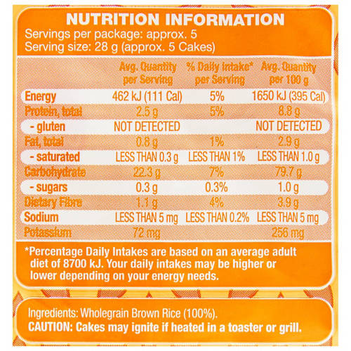 Gluten free thin brown rice cakes made with wholegrain brown rice.