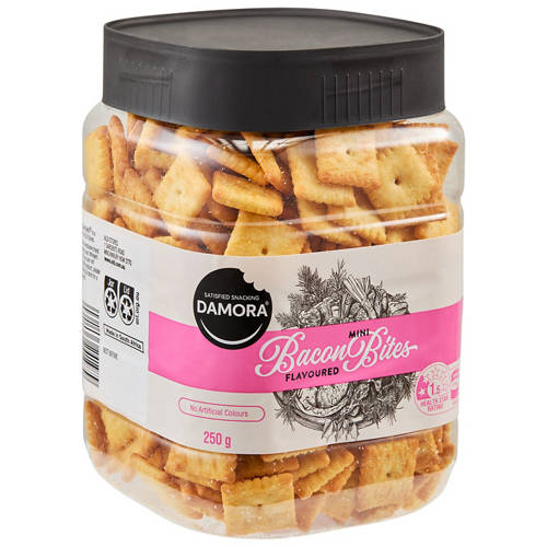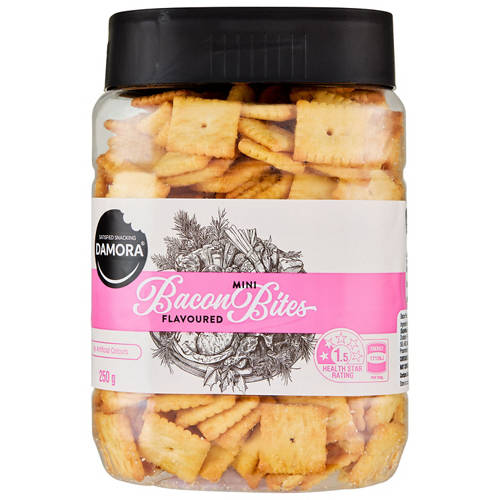 Savour the rich taste of Mini Bacon Flavoured Bites 250g. Packed with bold bacon flavour, these crunchy savoury bites are perfect for snacking, entertaining, or adding to grazing platters.