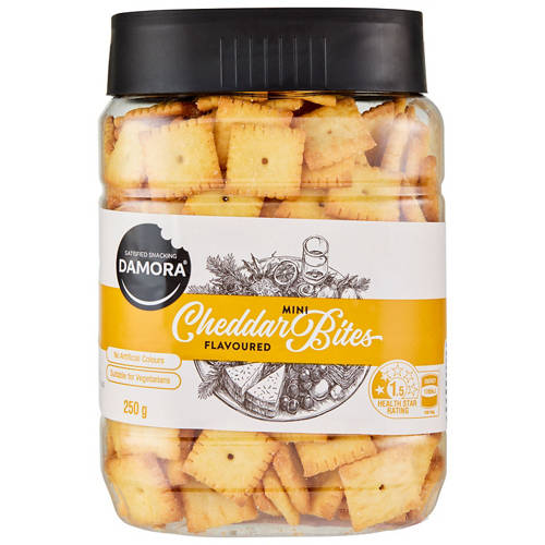 Savour the rich taste of Mini Cheddar Flavoured Bites 250g. Packed with bold cheddar flavour, these crunchy savoury bites are perfect for snacking, entertaining, or adding to grazing platters.