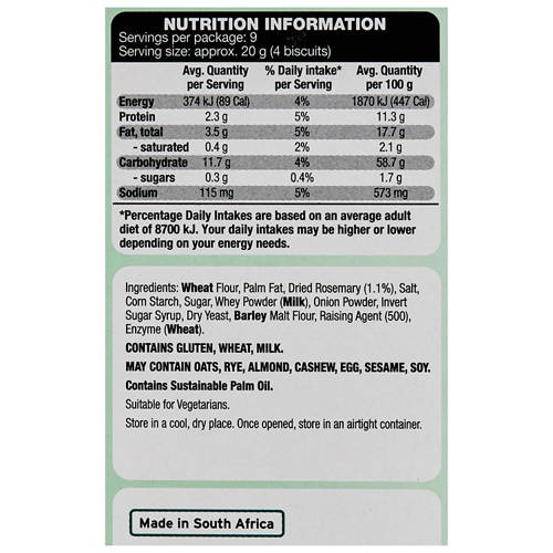 Golden, wheat crackers baked to perfection enriched with rosemary. Perfect for entertaining, or pairing with dips and cheeses.