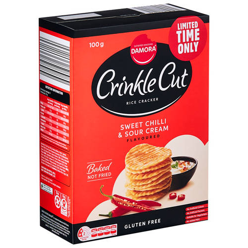 Elevate snacking to a gourmet experience. Baked (not fried) and crafted from quality ingredients, these crinkle cut rice crackers deliver an extra crunchy bite infused with a perfectly balanced sweet chilli seasoning. Gluten‑free, with no artificial flavours or added MSG, they’re ideal for mindful snackers seeking bold taste with a lighter, wholesome crunch.