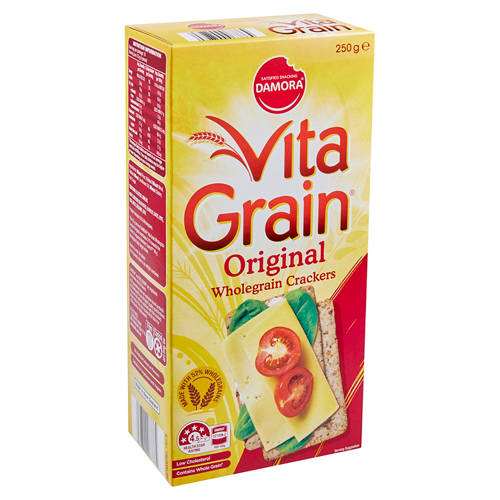 Made with 52% whole grains and low in cholesterol, Damora Vita Grain Wholegrain Crackers is a family favourite healthy snack. Enjoy on its own or with your favourite topping. No artificial colours or flavours. No preservatives.