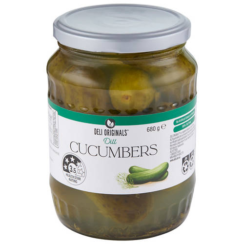 A tasty pickled snack, made from cucumbers and flavoured with dill. Great on sandwiches, in salads or even enjoyed on their own.