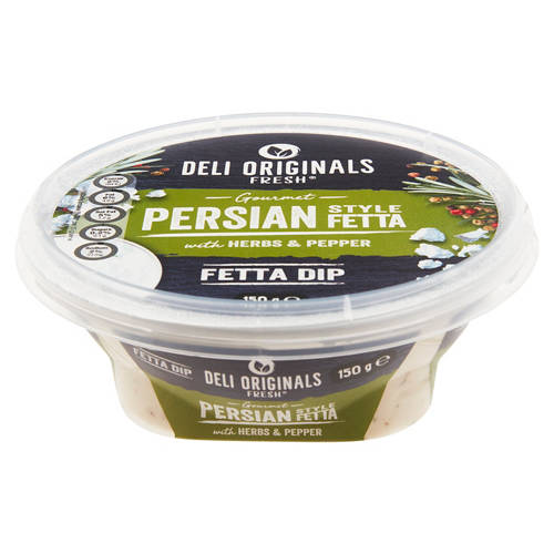 Deli original Persian feta dip a perfect accompaniment to any cheese platter. No artificial colours, flavours or preservatives. Gluten free.