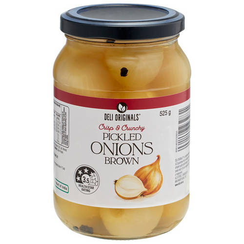 Crispy and crunchy pickled brown onions. A great addition to any platter or snack plate.