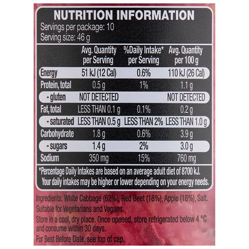 Enjoy our Sauerkraut with Beetroot & Apple, a tasty blend of fermented goodness. This mix combines the tanginess of traditional sauerkraut with the sweetness of beetroot and the freshness of apple. Made without preservatives and gluten-free, it's a great addition to a variety of meals. Use it as a topping for your favourite meats, mix it into salads, or enjoy it on its own for a straightforward burst of flavour. Experience the simple, delicious taste in every bite!