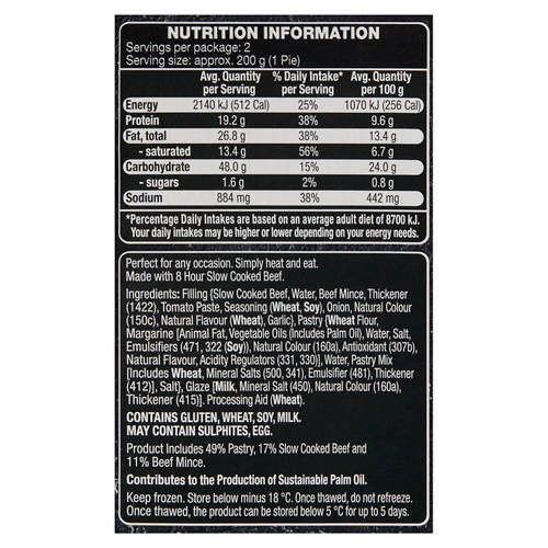 Made with only the finest ingredients, these gourmet pies are truly delectable. Slow cooked for 8 hours, the tasty chunks of beef are encased in a delicious pastry shell.